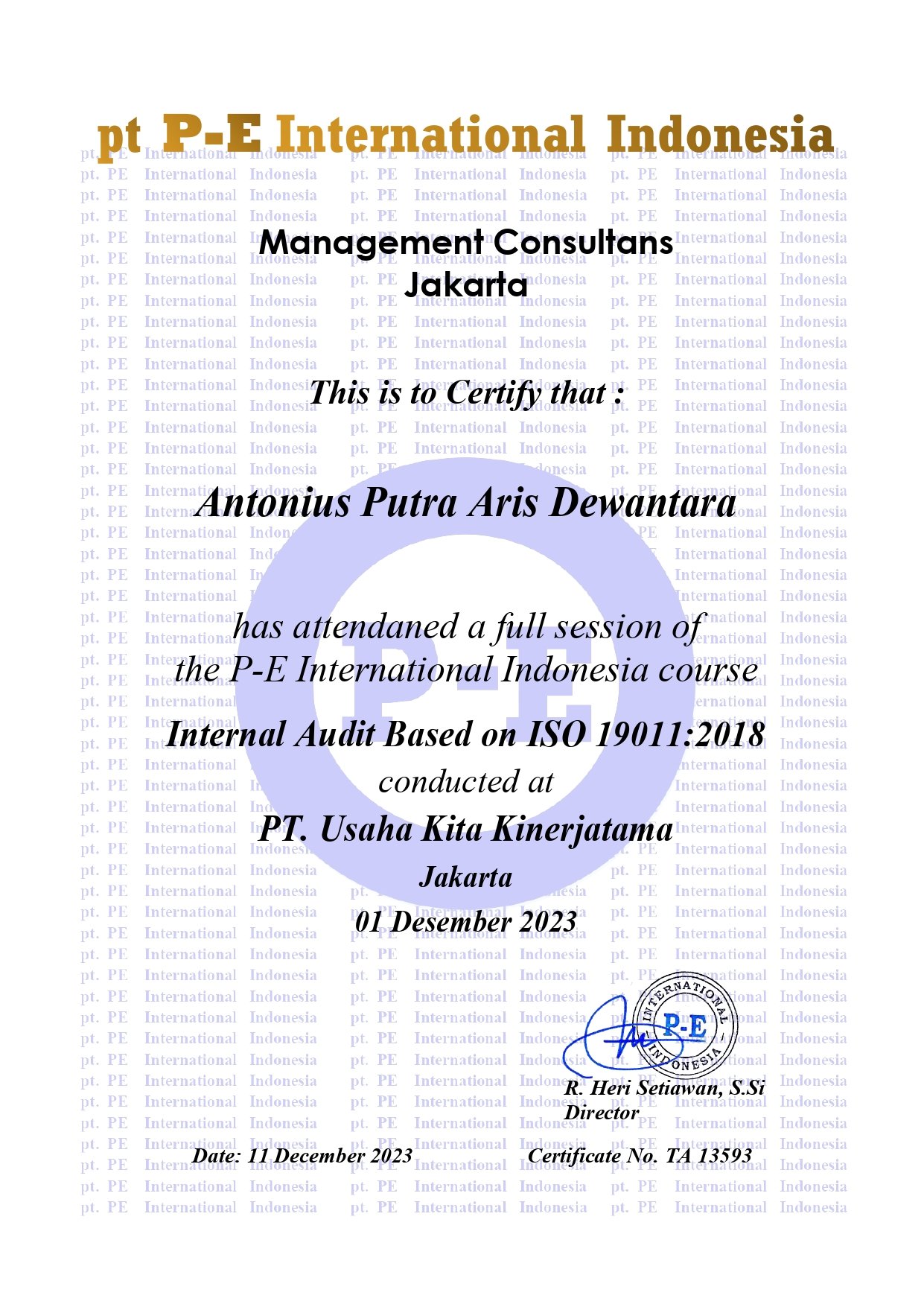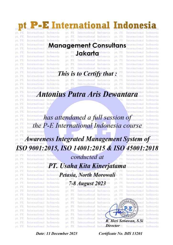 Sertifikasi Of ISO 9001 : 2015, ISO 14001 : 2015, ISO 45001 : 2018 PT Usaha Kita Kinerjatama