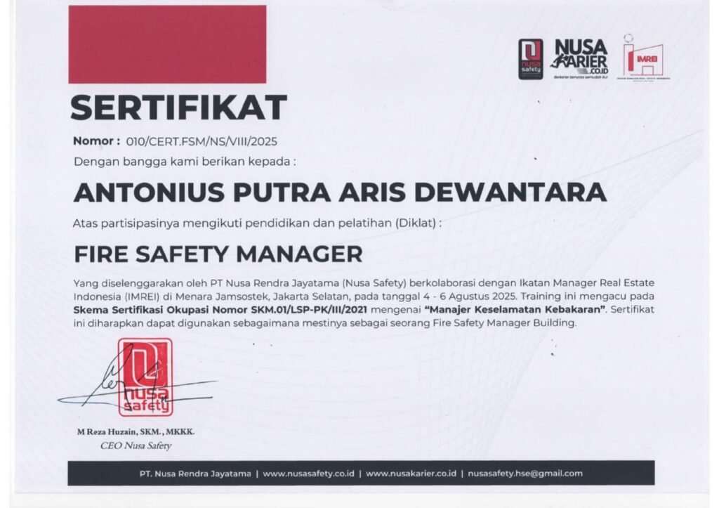 Manajer Keselamatan Kebakaran PT Jekael Invesco